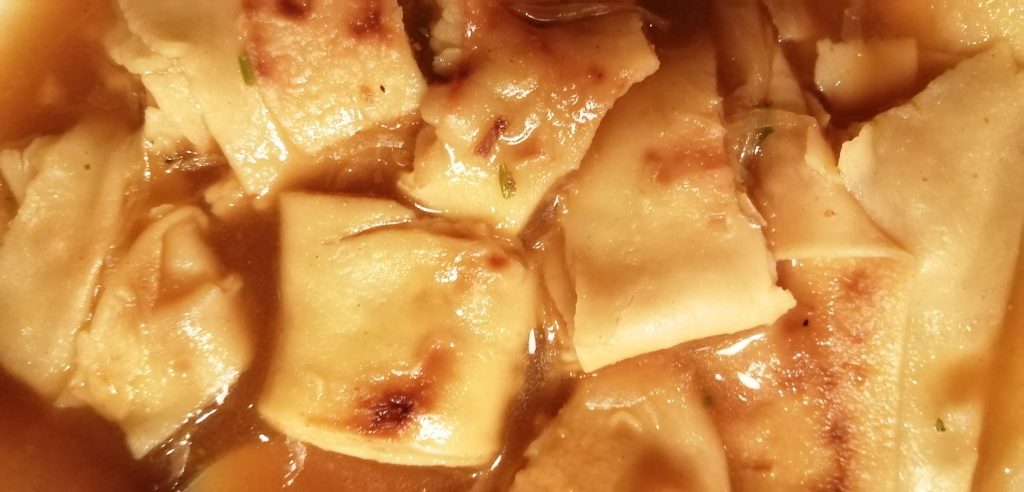Zum Schluß dia Krapfa em ma Topf mit ra dinna Brotasoß solag kocha, bis dr Doig bissfescht isch.